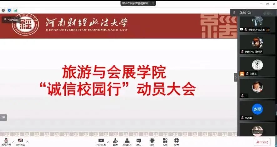 为积极宣传国家学生资助政策,推动学生资助工作的持续开展,11月22日,旅游与会展学院于腾讯会议举办“诚信校园行”学生资助知识竞赛暨十佳学生资助政策宣传大使动员大会。学院2020级学生郭腾担任主讲人,相关人员准时参会。